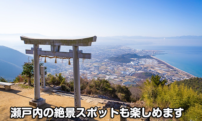 合宿免許で利用する宿泊施設はセキュリティ体制も万全なので、女性お一人でも安心して合宿にご参加できます。さらに共有スペースからは美しい瀬戸内海が眺めることができ、まさにリゾート気分。宿泊施設のそばには人気の観光スポットもあるので、教習の空き時間にぜひ訪ねてみてください。