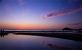 干潮時の夕暮れには南米の「ウユニ塩湖」を思わせる鏡のような絶景が楽しめる海岸。風が穏やかな日には、空と海がひとつになったような幻想的な写真が撮れることで人気の観光スポットです。